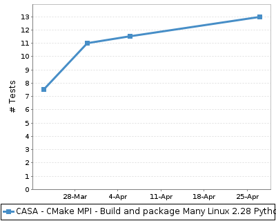 This page summarises information for results of test cases for Last 25 builds in CASA - CMake MPI - Build and package Many Linux 2.28 Python 3.10.