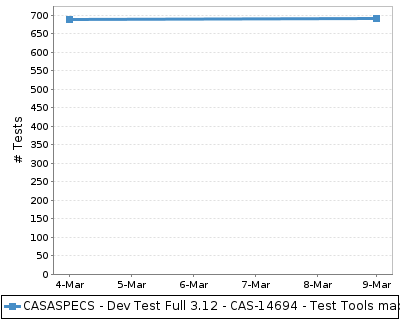 The chart below shows the number of tests across time. This provides a rough indication of the level of testing over time for the build.