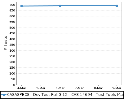 The chart below shows the number of tests across time. This provides a rough indication of the level of testing over time for the build.