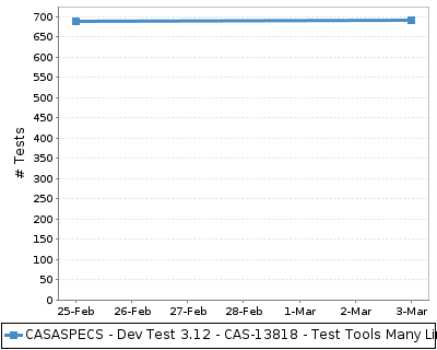 The chart below shows the number of tests across time. This provides a rough indication of the level of testing over time for the build.