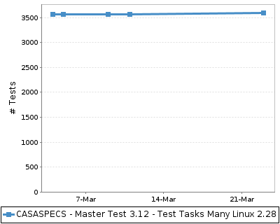The chart below shows the number of tests across time. This provides a rough indication of the level of testing over time for the build.