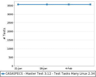 The chart below shows the number of tests across time. This provides a rough indication of the level of testing over time for the build.