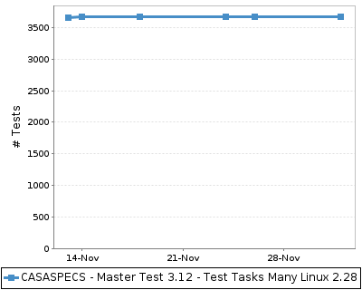 The chart below shows the number of tests across time. This provides a rough indication of the level of testing over time for the build.