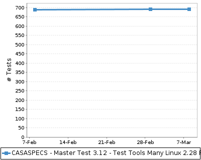 The chart below shows the number of tests across time. This provides a rough indication of the level of testing over time for the build.