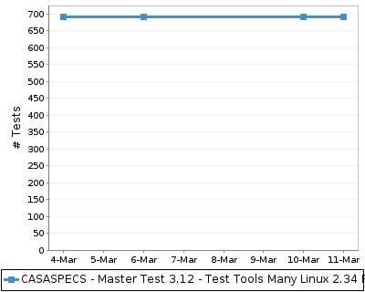 The chart below shows the number of tests across time. This provides a rough indication of the level of testing over time for the build.