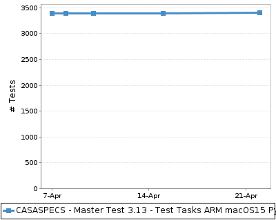 The chart below shows the number of tests across time. This provides a rough indication of the level of testing over time for the build.