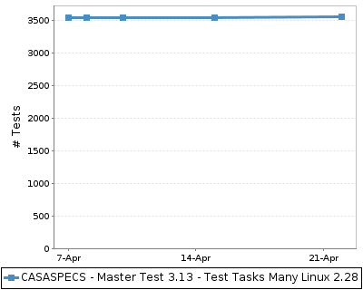 The chart below shows the number of tests across time. This provides a rough indication of the level of testing over time for the build.