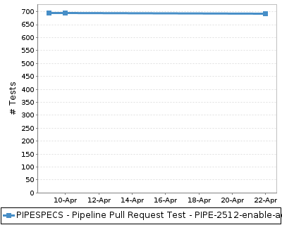 The chart below shows the number of tests across time. This provides a rough indication of the level of testing over time for the build.